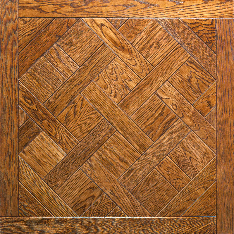 Инженерный модуль – это готовый к укладке двухслойный паркет. На основание из влагостойкой фанеры под большим давлением приклеены планки из твёрдолиственной породы, образующие оригинальный рисунок художественного паркета. Для сборки модуля между собой по периметру нарезается паз-гребень.Толщина ламели из ценных пород - 3 мм.