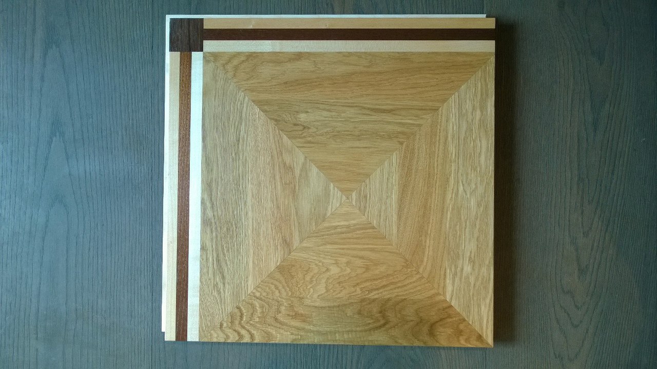 Инженерный модуль – это готовый к укладке двухслойный паркет. На основание из влагостойкой фанеры под большим давлением приклеены планки из дуба, образующие оригинальный рисунок художественного паркета. Для сборки модуля между собой по периметру нарезается паз-гребень.Толщина ламели из ценных пород - 6 мм.