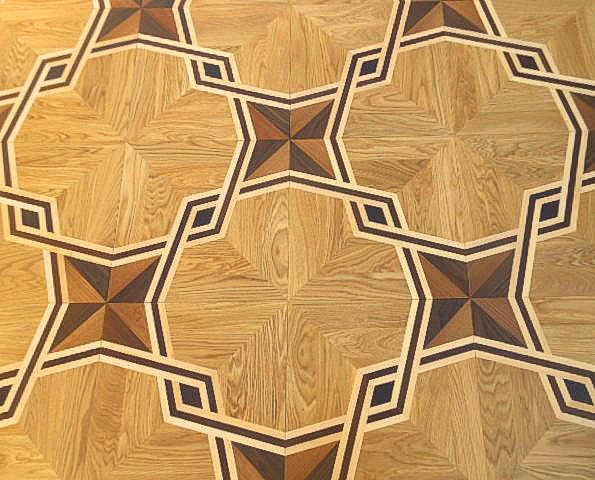 Инженерный модуль – это готовый к укладке двухслойный паркет. На основание из влагостойкой фанеры под большим давлением приклеены планки из дуба, образующие оригинальный рисунок художественного паркета. Для сборки модуля между собой по периметру нарезается паз-гребень.Толщина ламели из ценных пород - 6 мм.