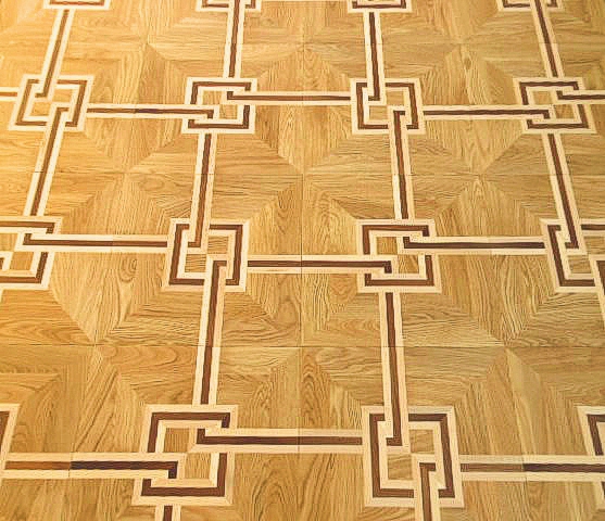 Инженерный модуль – это готовый к укладке двухслойный паркет. На основание из влагостойкой фанеры под большим давлением приклеены планки из дуба, образующие оригинальный рисунок художественного паркета. Для сборки модуля между собой по периметру нарезается паз-гребень.Толщина ламели из ценных пород - 6 мм.