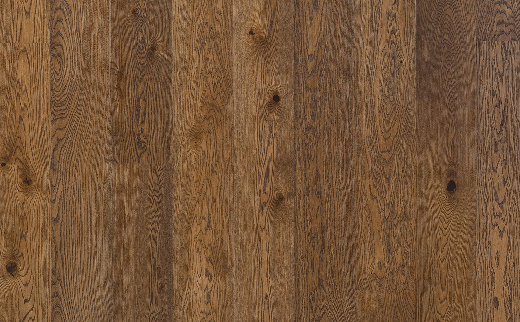Легко брашированная однополосная доска из дуба, покрыта коричневым маслом.