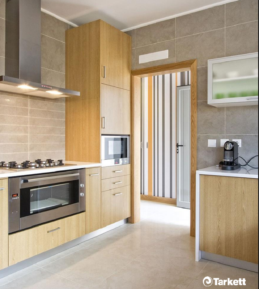 Ламинат «Tarkett» не притягивает пыль, отлично сочетаются с системами теплых полов и не требуют особых хлопот в обслуживании, что позволяет использовать его в местах повышенной проходимости.