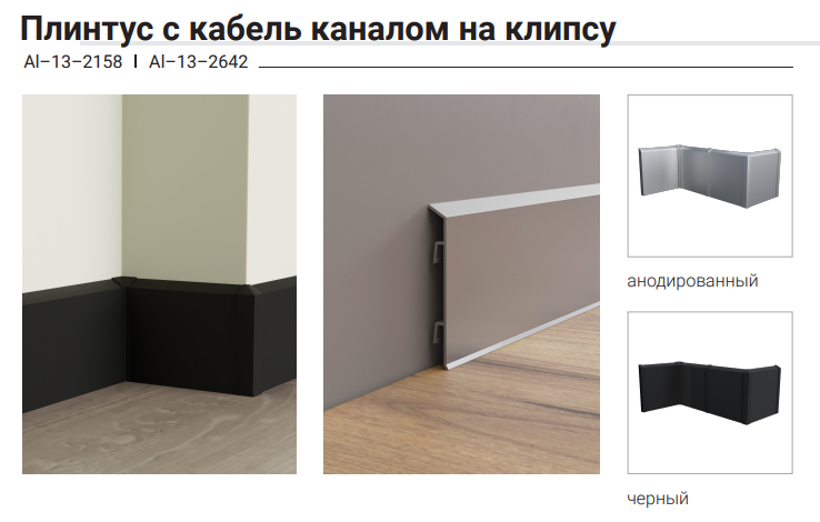 Коллекция AluminiumPro Плинтус с кабель-каналом на клипсу
