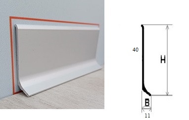 Плинтус имеет плоскую форму и не предусматривает размещение кабеля. Монтируется плинтус к стене с использованием монтажного клея.
