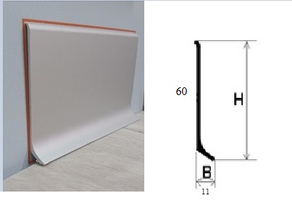Плинтус анодированный алюминиевый 60х11х3000 мм Россия, серебро