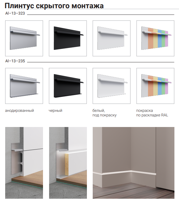 НазваниеСкрытый Плинтус AlPro13 - 323 не анодированный 2,7 м.