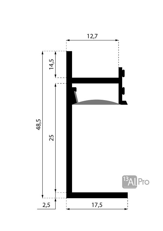 НазваниеТеневой плинтус скрытого монтажа AlPro13-7210 с нижней полкой БелыйМУАР(под подсветку) 2.7 м.