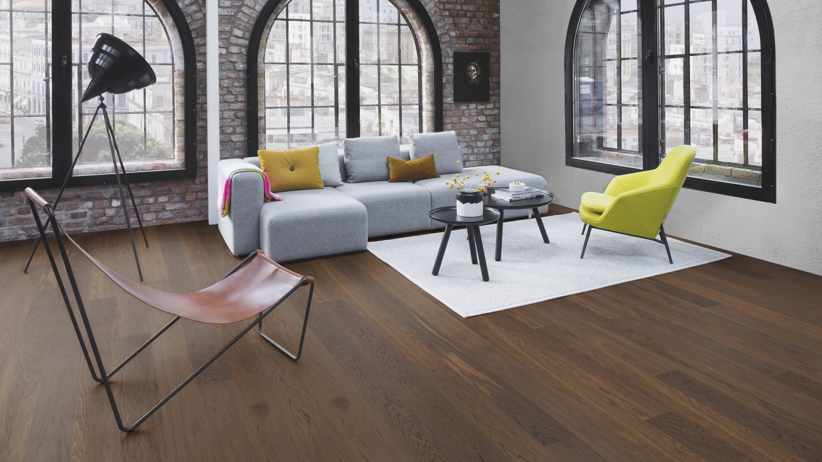 Однополосная паркетная доска дуб Smoked 138 браш, фаска, покрытие Live Pure. Благодаря специальной обработке напольного покрытия, Live Pure представляет собой поверхностный слой, который защищает пол от пыли, грязи, жидкостей и химических веществ, хотя в то же время пол выглядит и ощущается как необработанная или отшлифованная сырая древесина. Поверхность, обработанная Live Pure, также отличается лучшей устойчивостью к УФ лучам, чем стандартные покрытия из лака и масла. После укладки пола и во время его использования не требуется никакой дополнительный уход.