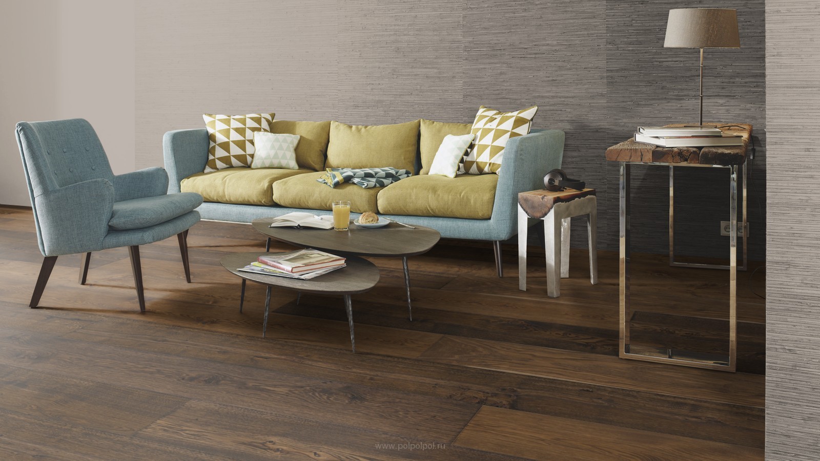Большие комнаты вдохновляют на декорирование очень широкими досками. Длина доски Шалетино 2.75 м, ширина 30 см.Тщательно спроектированный дизайн. Надёжная 3-х слойная конструкция с износостойким слоем из твёрдой древесины толщиной 4.5 мм была спроектирована для длительной эксплуатации. Фаска с четырёх сторон. Все доски с микро фаской 1 мм под углом 45 градусов вдоль четырёх сторон. Фаска делает акцент на значительную длину и ширину этих больших досок. На длинных сторонах всех досок - шип-паз, на коротких - вставной плоский шип.