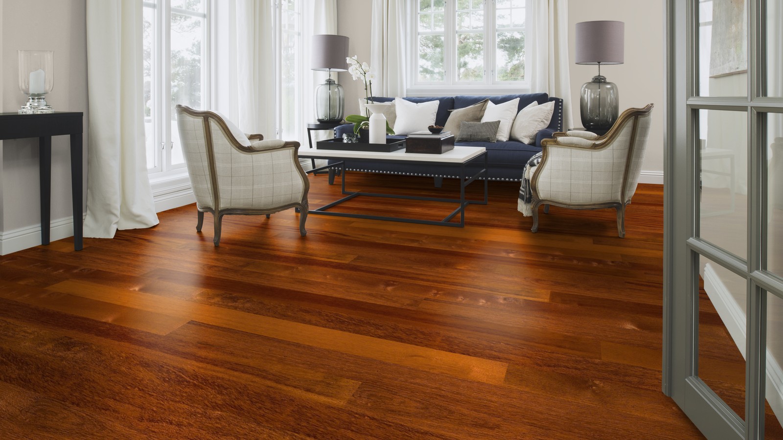 Однополосная паркетная доска мербау, без фаски, покрытие полуматовый лак