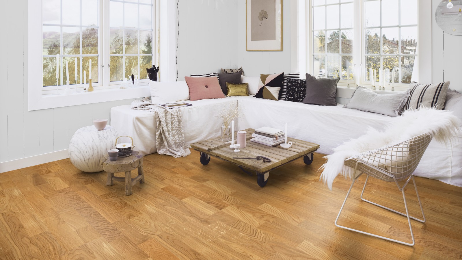 Паркетная доска дуб белый Анданте 215 мм мат лак