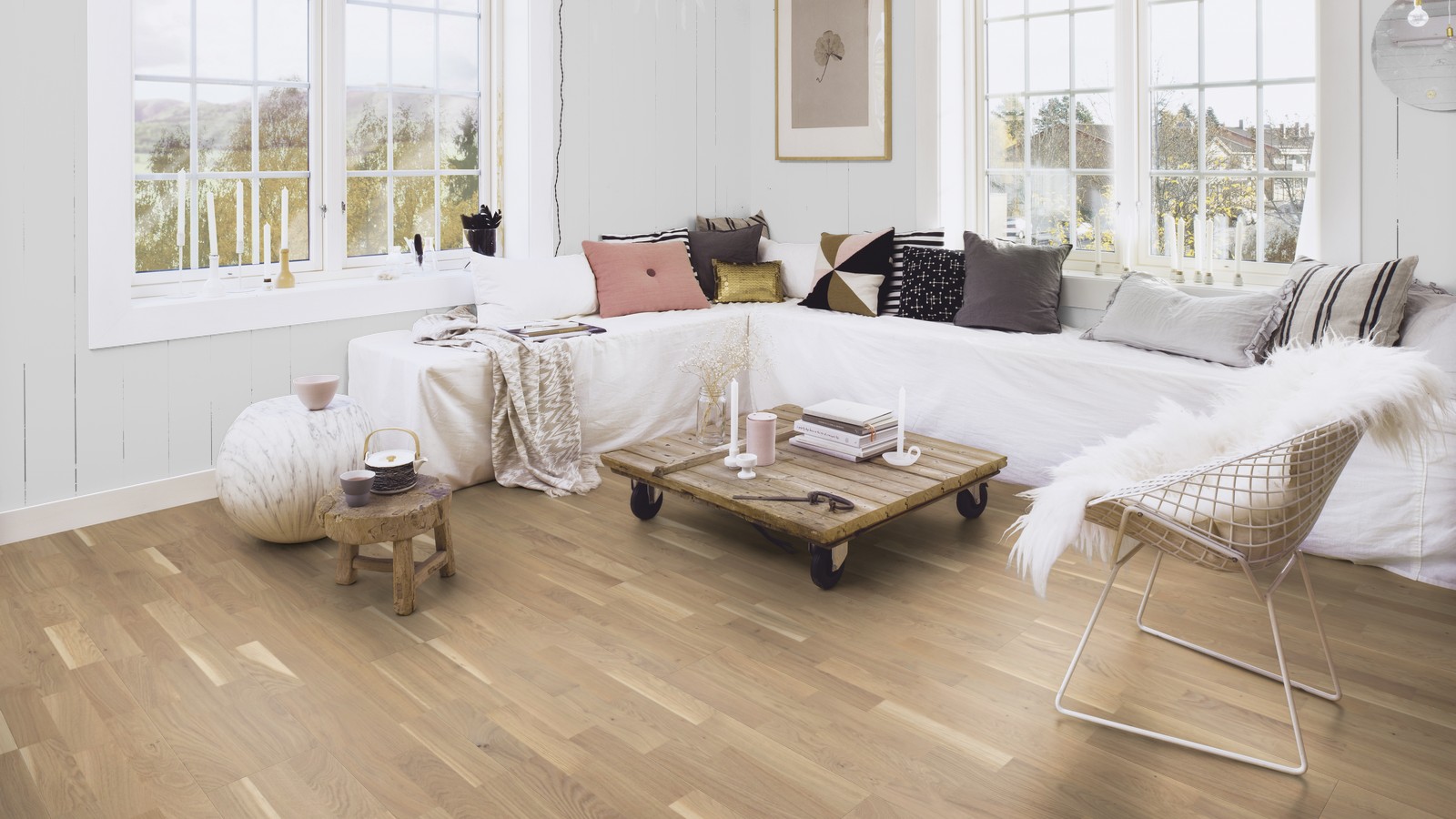 Трёхполосная паркетная доска дуб Finale,без фаски, покрытие лак Live Pure