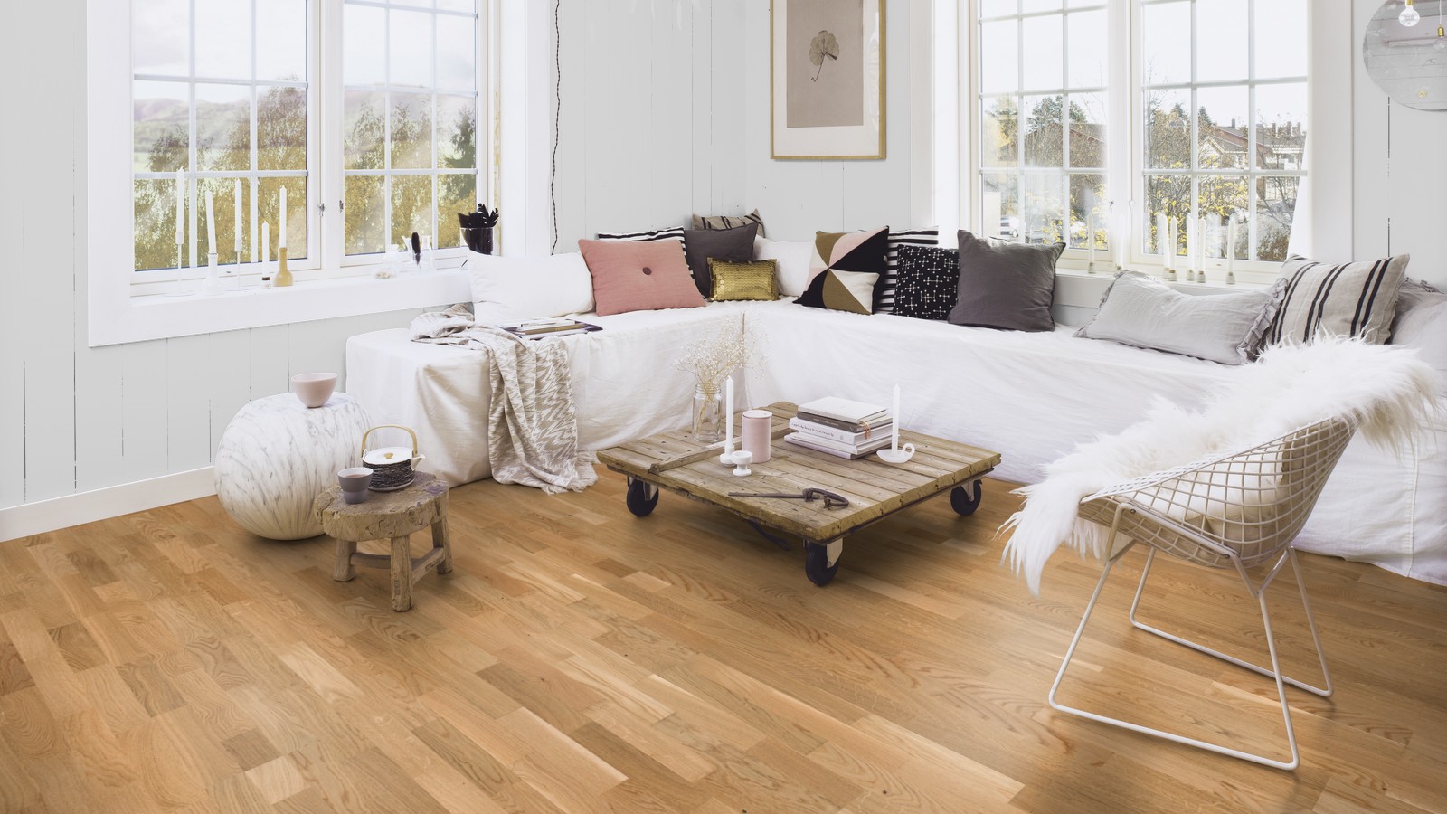 Трёхполосная паркетная доска дуб Finale,без фаски, покрытие масло Live Natural