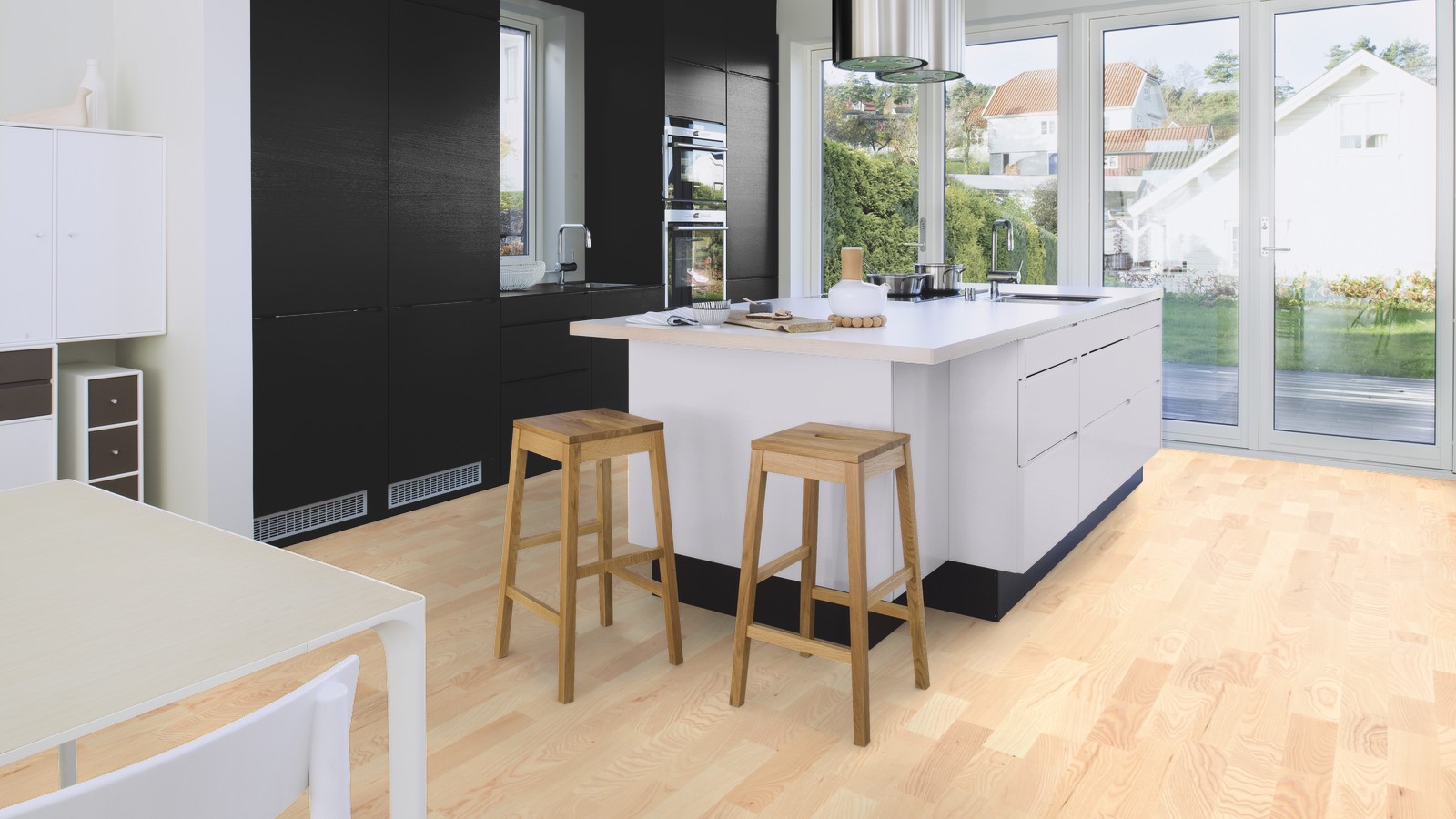 Трёхполосная паркетная доска ясень белый Анданте,без фаски, покрытие матовый лак