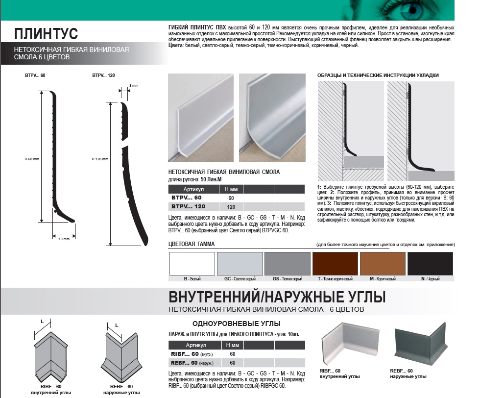 НазваниеПлинтус радиусный гибкий эластичный ПВХ Progress Plast BTPVT 60 тёмно- коричневый